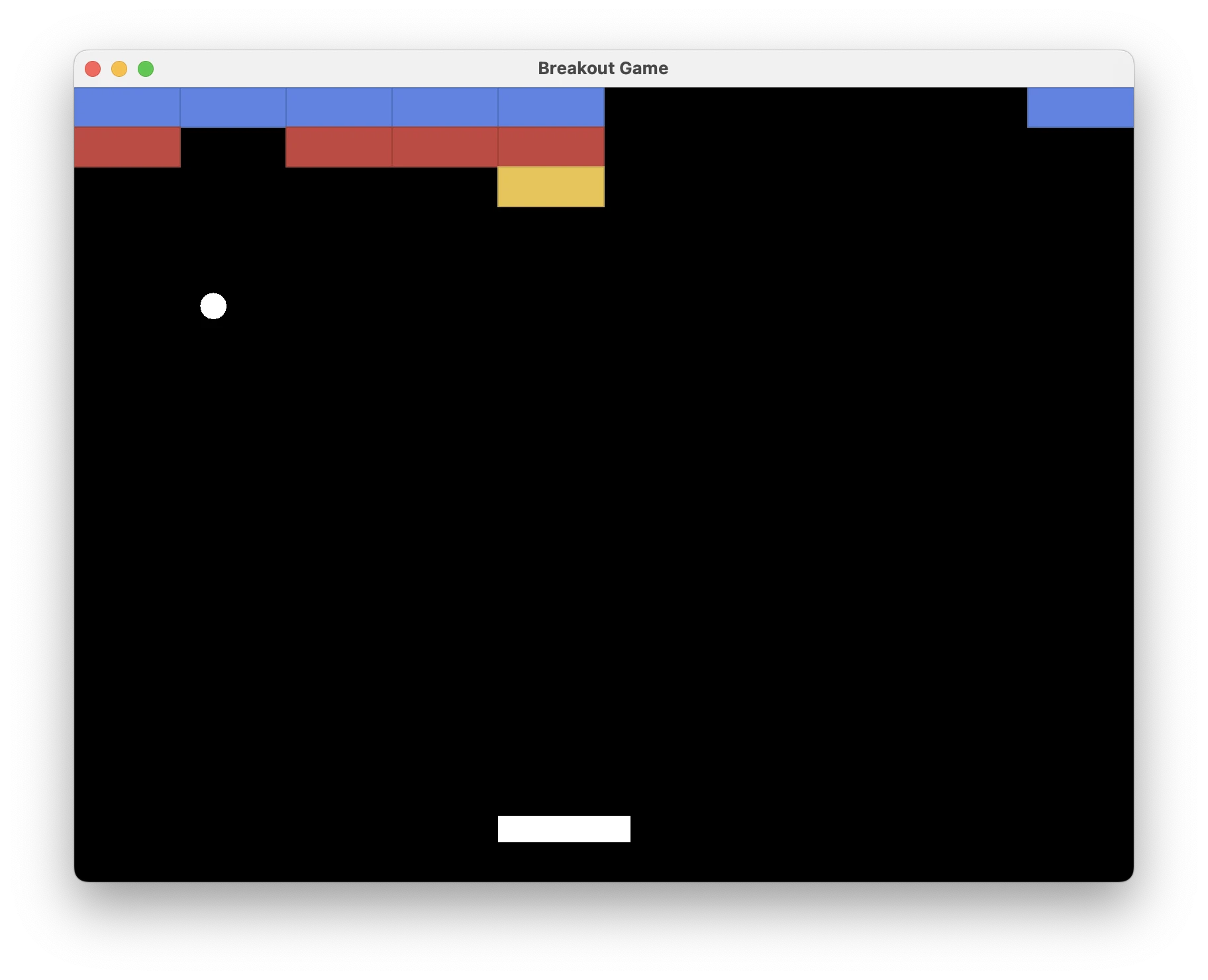 The goal is to clear all the bricks without letting the ball fall past the paddle. Players move the paddle side to side to keep the ball in play,